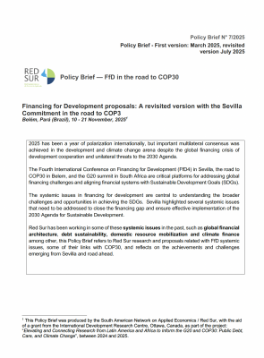 Para ver un resumen de las propuestas de Red Sur del camino de Sevilla hacia la COP les invitamos a ver el brief “Financing for Development (FfD) proposals: revisited version with the Sevilla Commitment in the road to COP30”.